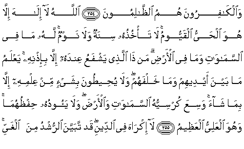 [Baqarah 2:253] These are the Noble Messengers, to whom We gave excellence over each other; of them are some with whom Allah spoke, and some whom He exalted high above all others; and We gave Eisa (Jesus), the son of Maryam, clear signs and We aided him with the Holy Spirit; and if Allah willed, those after them would not have fought each other after the clear evidences had come to them, but they differed - some remained on faith and some turned disbelievers; and had Allah willed, they would not have fought each other; but Allah may do as He wills. Section 34 [Baqarah 2:254] O People who Believe! Spend in Allah's cause, from what We have provided you, before the advent of a day in which there is no trade, and for the disbelievers neither any friendship nor intercession; and the disbelievers themselves are the unjust. [Baqarah 2:255] Allah - there is no God except Him; He is Alive (eternally, on His own) and the Upholder (keeps others established); He never feels drowsy nor does He sleep; to Him only belongs all whatever is in the heavens and all whatever is in the earth; who is he that can intercede* with Him except by His command? Knowing what is in front of them and what is behind them; and they do not achieve anything of His knowledge except what He wills; His Throne (of Sovereignty) encompasses the heavens and the earth; and it is not difficult for Him to guard them; and He is the Supreme, the Greatest. (This Verse is popularly known as Ayat Al-Kursi. It has a special status and reciting it carries great reward. *Prophet Mohammed – peace and blessings be upon him – will be the first one to be granted the permission to intercede, others will follow.) [Baqarah 2:256] There is no compulsion at all in religion; undoubtedly the right path has become very distinct from error; and whoever rejects faith in the devil (false deities) and believes in Allah has grasped a very firm handhold; it will never loosen; and Allah is All Hearing, All Knowing. [Baqarah 2:257] Allah is the Guardian of the Muslims - He removes them from realms of darkness towards light; and the supporters of disbelievers are the devils - they remove them from light towards the realms of darkness; it is they who are the people of fire; they will remain in it forever. Section 35 [Baqarah 2:258] Did you (O dear Prophet Mohammed - peace and blessings be upon him) not see him who argued with Ibrahim (Abraham) concerning his Lord, as Allah had given him the kingdom? When Ibrahim said, "My Lord is He Who gives life and causes death", he answered, "I give life and cause death"; Ibrahim said, "So indeed it is Allah Who brings the sun from the East - you bring it from the West!" - the disbeliever was therefore baffled; and Allah does not guide the unjust. [Baqarah 2:259] Or like him * who passed by a dwelling and it had fallen flat on its roofs; he said, "How will Allah bring it to life, after its death?"; so Allah kept him dead for a hundred years, then brought him back to life; He said, "How long have you stayed here?"; he replied, "I may have stayed for a day or little less"; He said, "In fact, you have spent a hundred years - so look at your food and drink which do not even smell stale; and look at your donkey whose bones even are not intact - in order that We may make you a sign for mankind - and look at the bones how We assemble them and then cover them with flesh"; so when the matter became clear to him, he said, "I know well that Allah is Able to do all things." (Prophet Uzair - peace be upon him.) [Baqarah 2:260] And when Ibrahim said, "My Lord! Show me how You will give life to the dead"; He said, "Are you not certain (of it)?" Ibrahim said, "Surely yes, why not? But because I wish to put my heart at ease"; He said, "Therefore take four birds (as pets) and cause them to become familiar to you, then place a part of each of them on separate hills, then call them - they will come running towards you; and know well that Allah is Almighty, Wise." (Prophet Ibrahim called the dead birds and they did come running towards him.) Section 36 [Baqarah 2:261] The example of those who spend their wealth in Allah’s way is similar to that of a grain which has sprouted seven stalks and in each stalk are a hundred grains; and Allah may increase it still more than this, for whomever He wills; and Allah is Most Capable, All Knowing. [Baqarah 2:262] Those who spend their wealth in Allah’s way and thereafter do not express favour nor cause injury (hurt the recipient’s feelings), their reward is with their Lord; their shall be no fear upon them nor shall they grieve. [Baqarah 2:263] Speaking kind words and pardoning are better than charity followed by injury; and Allah is the Independent, Most Forbearing. [Baqarah 2:264] O People who Believe! Do not invalidate your charity by expressing favour and causing injury - like one who spends his wealth for people to see, and does not believe in Allah and the Last Day; his example is similar to that of a rock covered with dust and hard rain fell on it, leaving it as a bare rock; they shall get no control over (or benefit from) anything they have earned; and Allah does not guide the disbelievers. [Baqarah 2:265] And the example of those who spend their wealth in order to seek Allah’s pleasure and to make their hearts steadfast, is similar to that of a garden on a height - hard rain fell on it, so bringing forth its fruit twofold; so if hard rain does not reach it, the dew is enough; and Allah is seeing your deeds. [Baqarah 2:266] Would any of you like that he may own a garden of dates and grapes, with rivers flowing beneath it - in it are all kinds of fruits for him - and he reaches old age and has young children; therefore a windstorm containing fire came to the garden, burning it? This is how Allah explains His verses to you, so that you may give thought. Section 37 [Baqarah 2:267] O People who Believe! Spend a part of your lawful earnings, and part of what We have produced from the earth for 